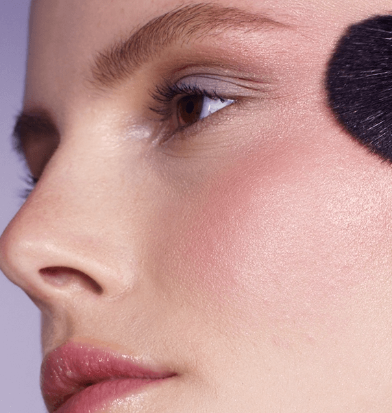1. Trage einen matten Blush-Shade entlang des Wangenknochens auf. 2. Wähle den passenden Schimmer-Shade des Blushs und trage ihn entlang der oberen Wangenknochen auf. Verblende leicht nach oben zur Schläfe hin, um zu liften und Strahlen zu schenken.